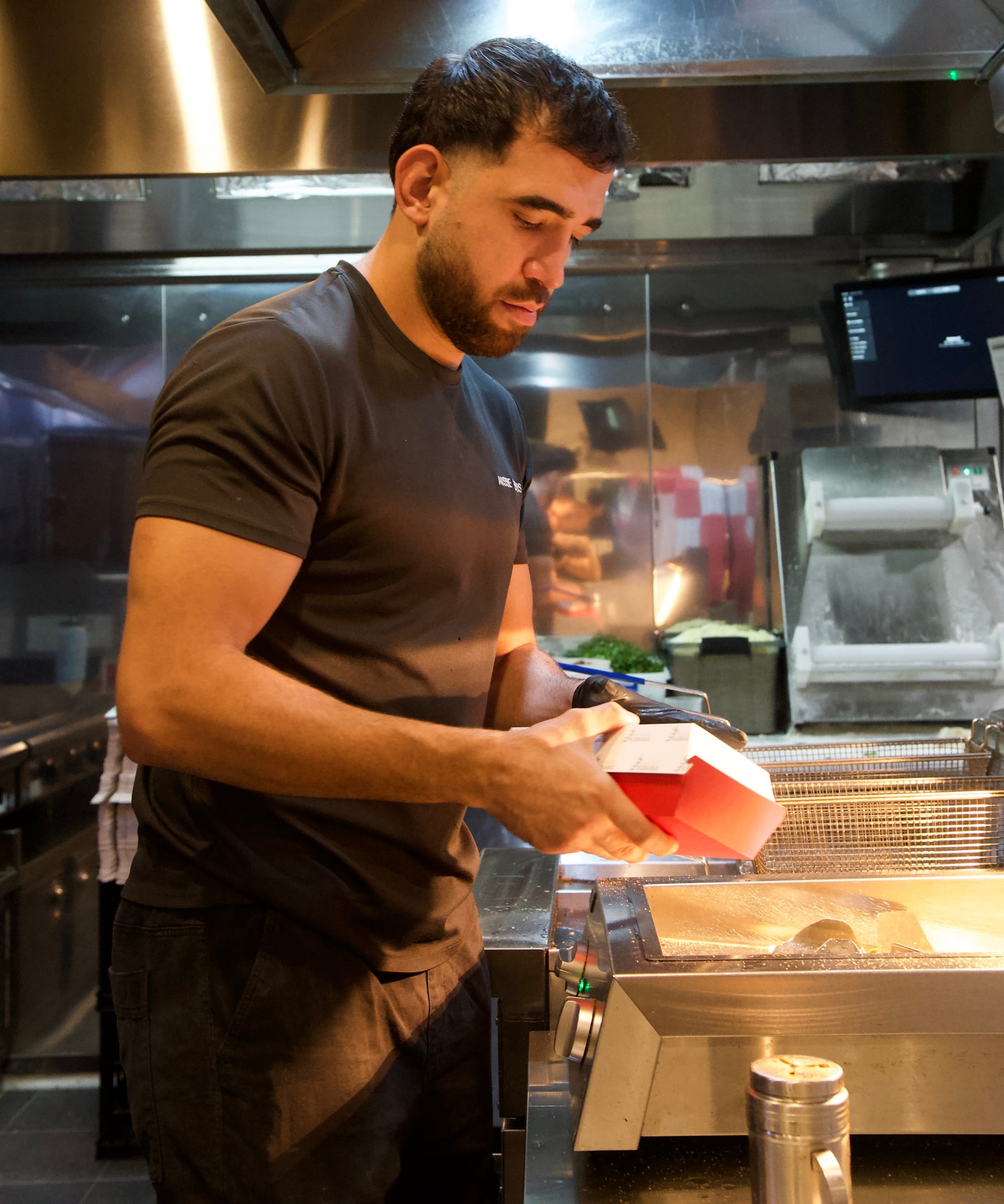 I’m obviously not the only person weirdly invested in this kebab shop, so we got onto the reopening and the month-long delays during the renovation. An inept builder was at fault, turning a ‘six-week’ job into four months. ‘Make them sign a contract,’ he advised, ‘so they don’t delay you or stuff your work up… see the exhaust system?’ He pointed past the register into the open-view kitchen. ‘It’s like a major thing. We had to get that changed.’